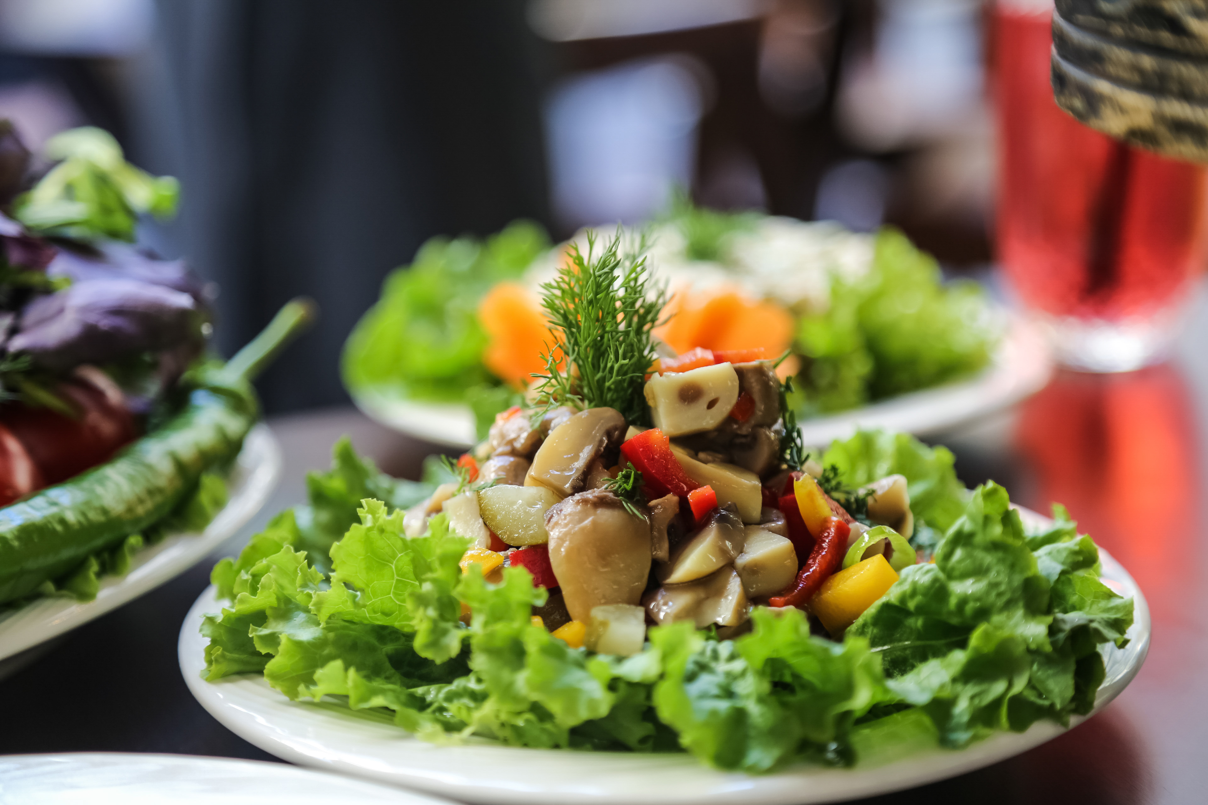 Iceberg lettuce topped with Cucumber, diced tomato & Carrots.